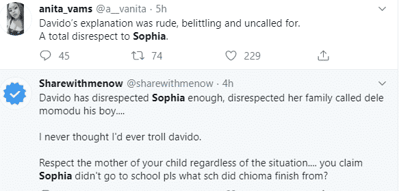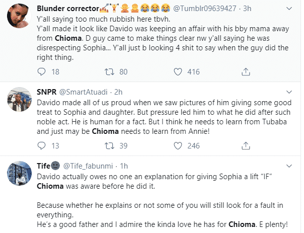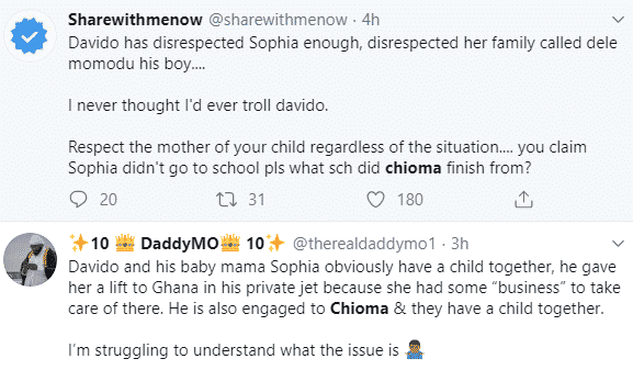 Sophia didn’t take Davido’s post lying low as she immediately took to her page to react. She stated that she did not ask for a lift as Davido implied. She also pointed that she and their daughter fly first class or business class.