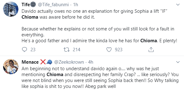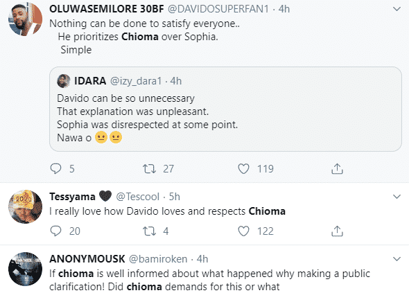 Nigerians on social media are divided with regards to the ongoing drama between singer, Davido and his babymama, Sophia Momodu, on IG.