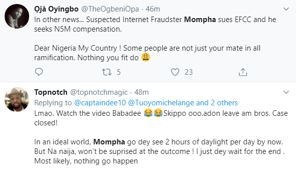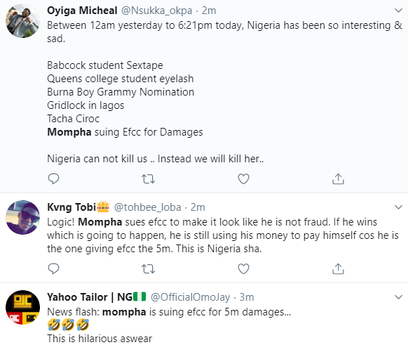 Nigerians have taken to Twitter to react to the news of Instagram bigboy, Ismaila Mustapha aka Mompha suing EFCC.