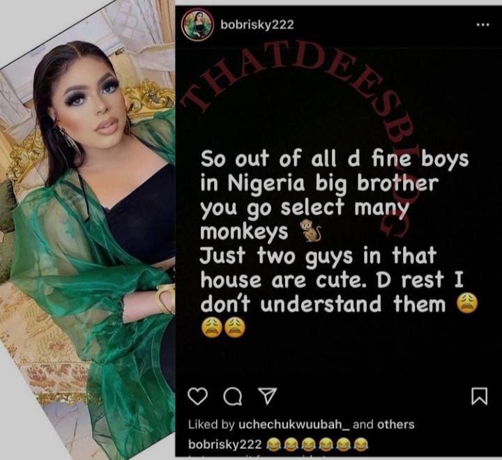 Controversial crossdresser, Bobrisky has come under fire following a recent statement he made about BBNaija housemates.