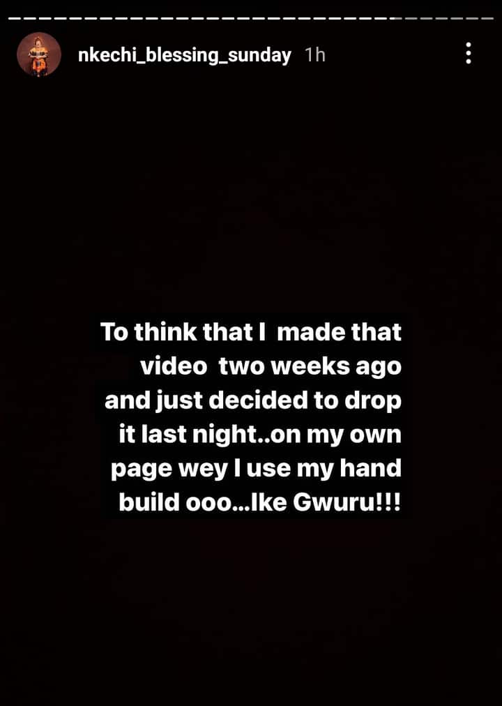 The Nollywood diva also noted that the video was an old recording she had made since November 7th and had only decided to upload it last night, November 18.