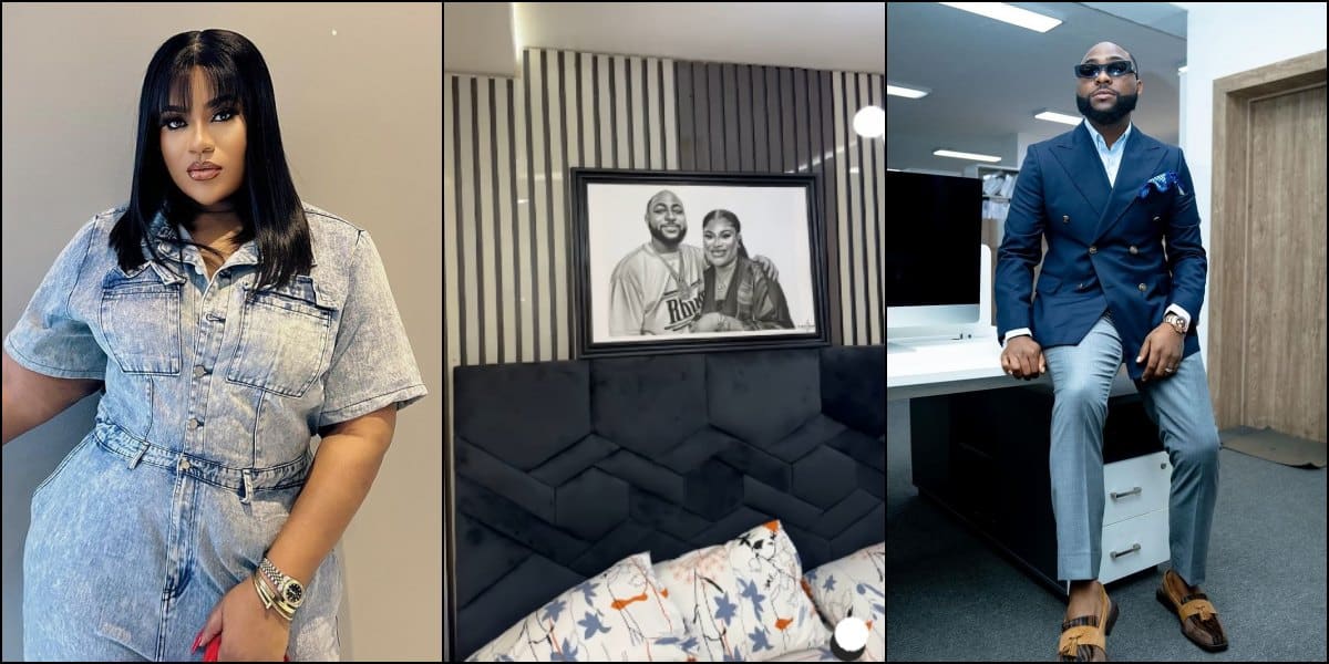 Nkechi Blessing sparks reactions as she hangs artwork of herself and Davido in her bedroom