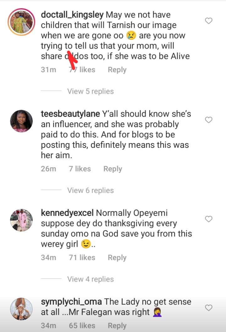 kennedyexcel wrote: “Normally Opeyemi suppose dey do thanksgiving every sunday omo na God save you from this werey girl”