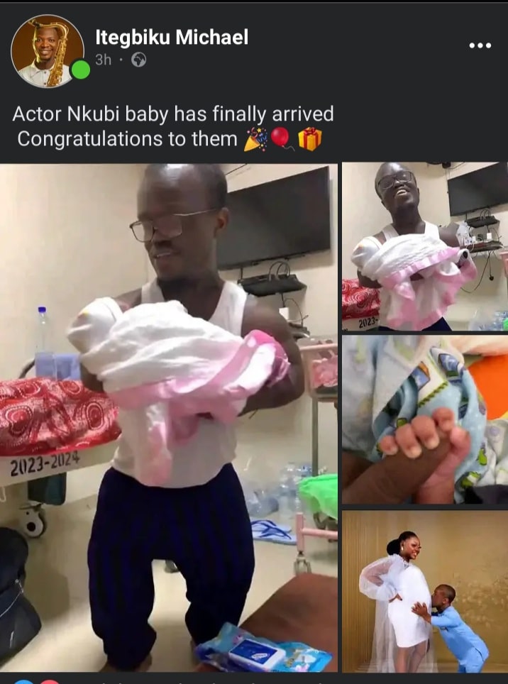 Popular comedian and actor, Victor Nwaogu a.k.a Nkubi excited as he becomes a father to a bouncing baby girl.
