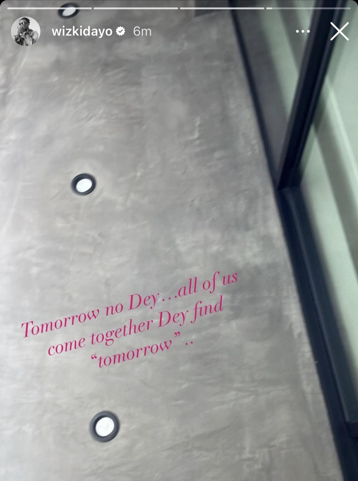 “Wait. Nevermind. Actually mind. Na so I dream oooo say tomorrow no dey. All of us come together dey find tomorrow”, Wizkid wrote.