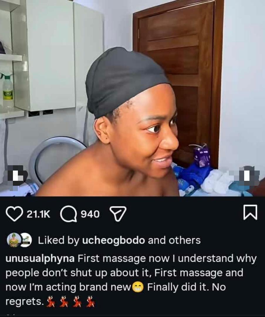“First massage, now I understand why people don’t shut up about it. First massage, and now I’m acting brand new. Finally did it. No regrets,” she said.