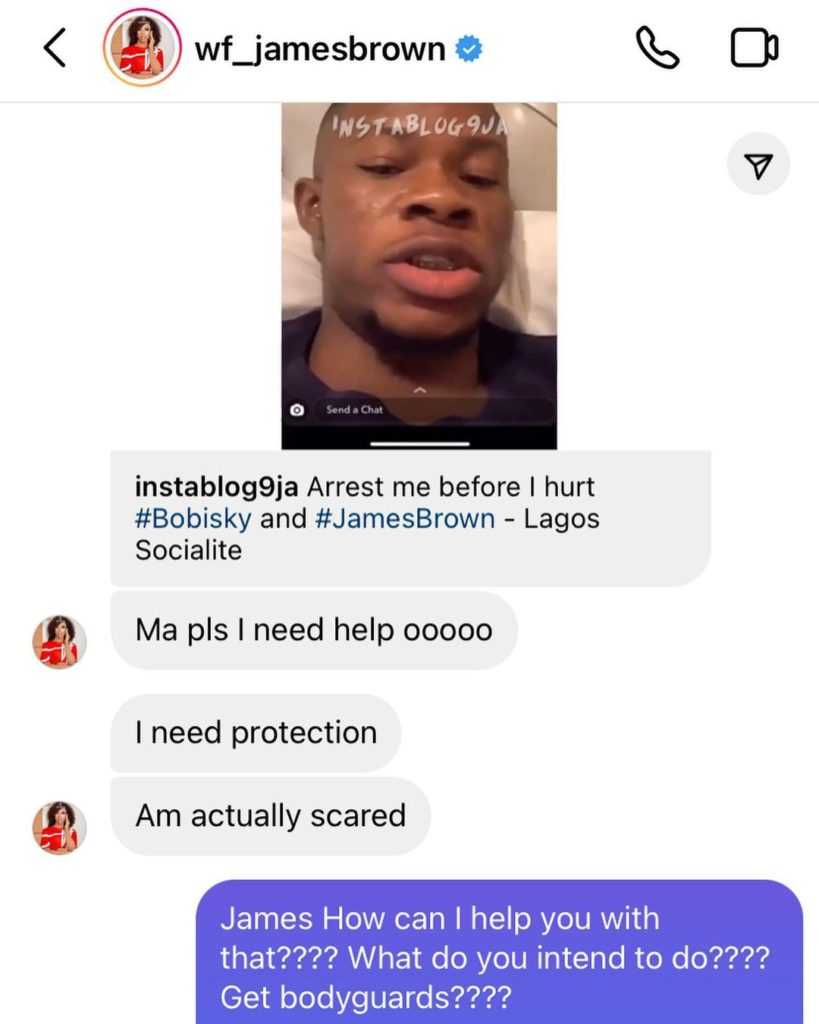 Apparently, Jaruma was forced to expose their conversation after James Brown reportedly threw shades at her on Instagram.