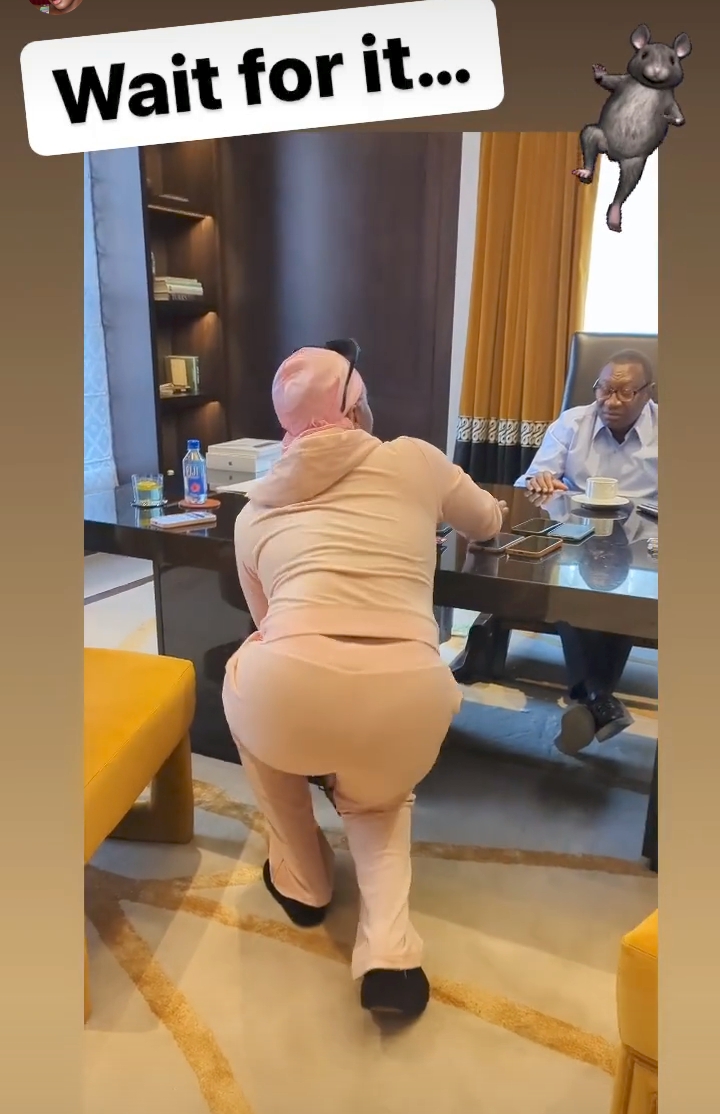 The popular DJ who is currently running her master’s program at Oxford university, London, was spotted having a conversation with her dad in his office.