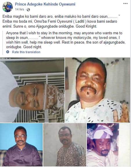 The sad news was shared by the deceased’s younger brother, Prince Kehinde Adegoke Oyewunmi. He shared photos of the late actor and accompanied it with a sad caption.