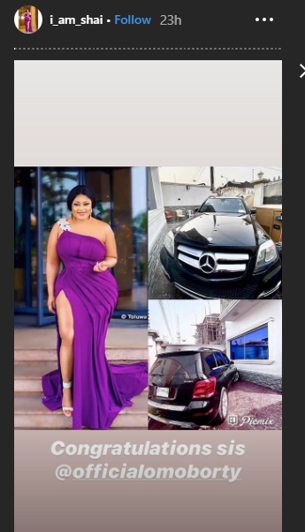 Nollywood actress Biodun Okeowo popularly called Omoborty has become the latest celebrity to own a Mercedes Benz.