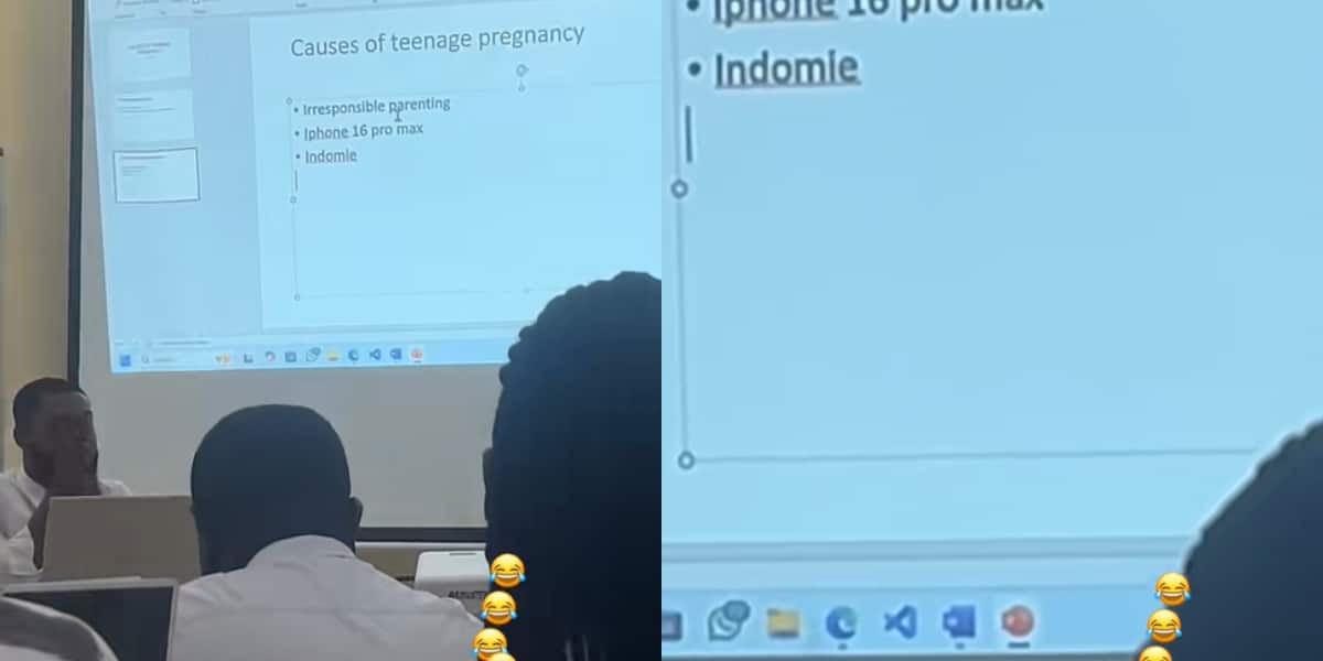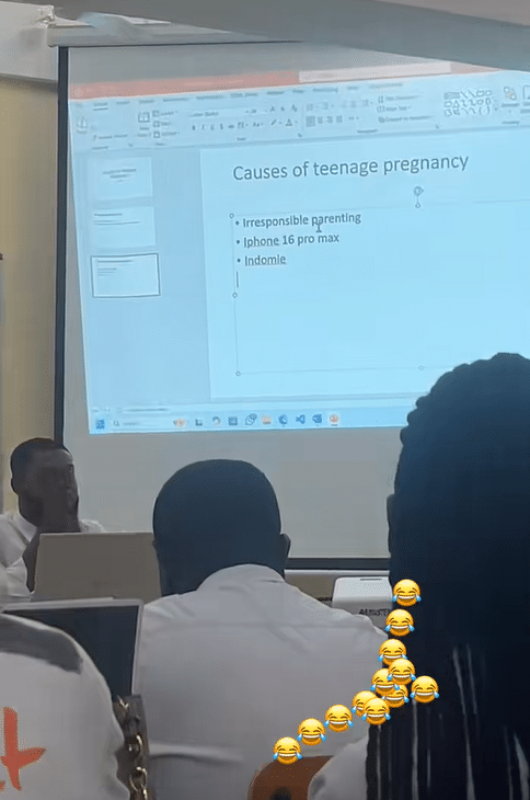 The causes of pregnancy displayed on the screen included irresponsible parenting, iPhone 16 Pro Max, and Indomie.