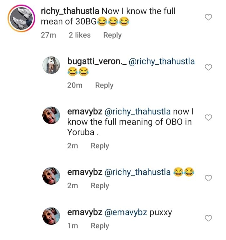 @richythahustla reacted: “Na now I know the full meaning of 30BG.”