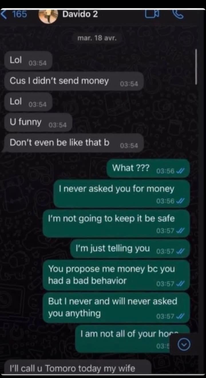 “Now I know the real meaning of 30BG” – Nigerians react to Davido’s leaked chats with new lady