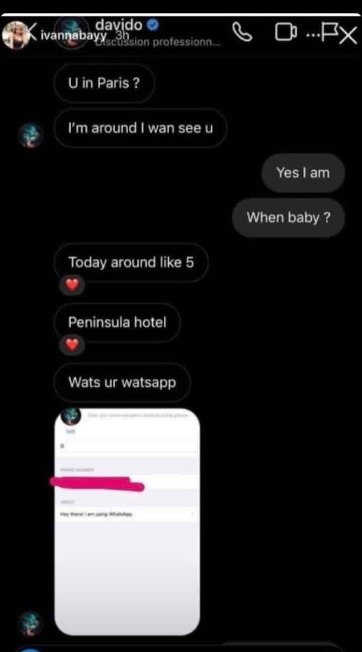Trending conversations between Davido and a French lady identified as @ivannabayy on Instagram has caused a buzz online.