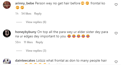“This Baby Geh life is not easy oh 🥲🥲. I hereby divorce all forms of frontal hair 🥲🥲🤣🤣🤣,” she wrote.