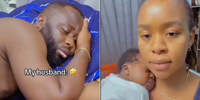 The TikTok user @iam_adamma revealed her frustrating situation as her husband peacefully slept at 10 pm, despite promising to help with their baby.