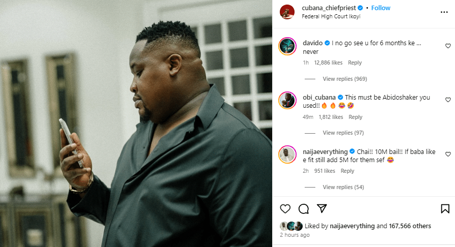 Popular billionaire Obi Cubana references ‘Abido Shaker’ as he marvels at Cubana Chief Priest’s instant N10M bail condition.