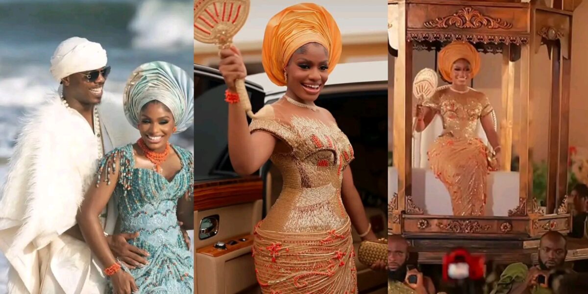 In the now-viral video, Kenchukwu is spotted sitting on a golden palanquin, beaming as she’s carried into the wedding hall, dazzling in an exquisite outfit.