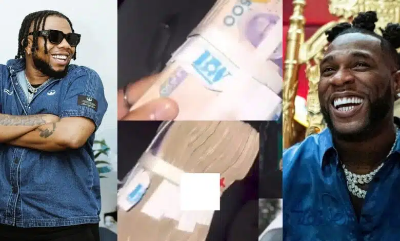 “Odogwu don show love” – Dandizzy hails Burna Boy as he receives N1M cash from him (Video)