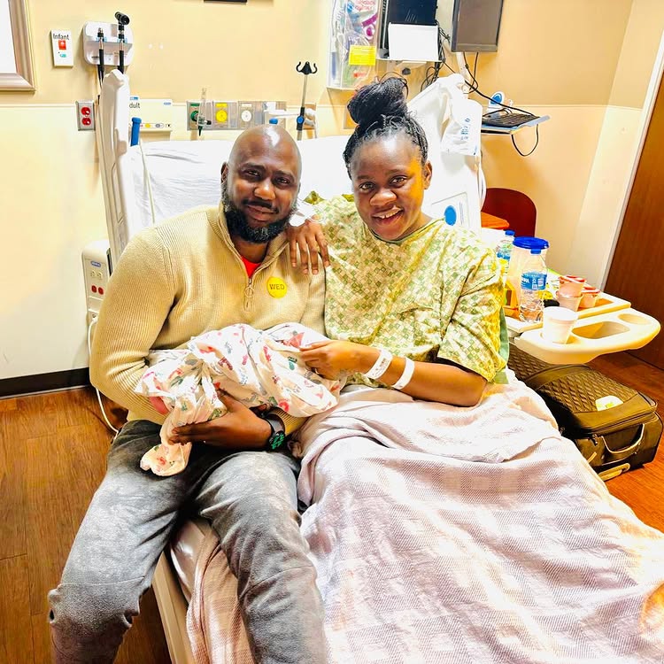 Nollywood actress Olayinka Solomon has joyfully announced the arrival of her baby boy with her partner, Olufemi Ogunfoye, a veteran in the U.S. Army.