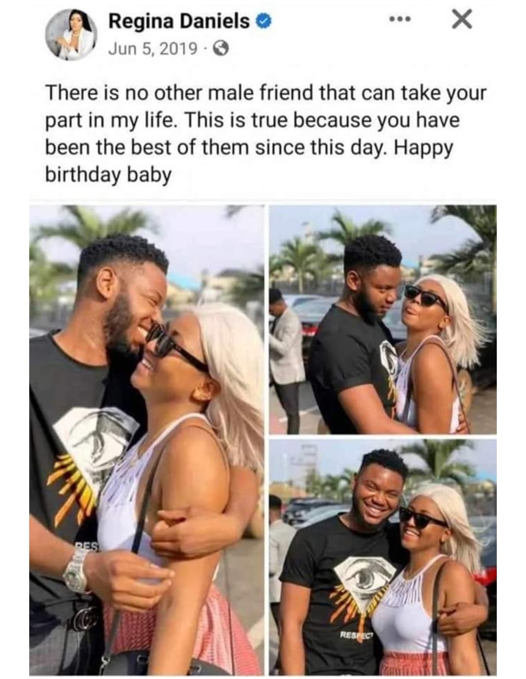 An old post of Nollywood actress Regina Daniels professing her undying love to Somadina and promising to stay together has popped up.
