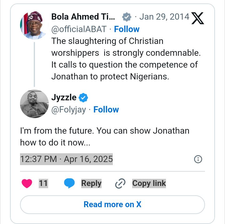 Now, over a decade later, citizens are drawing comparisons between past and present, questioning President Tinubu’s ability to manage the country’s worsening security situation, especially as similar killings continue to rock the nation.