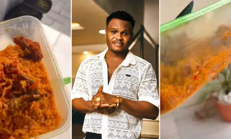 Nigerian comedian, Oluwadolarz, has called out a delivery man for allegedly eating part of the food he brought for him.