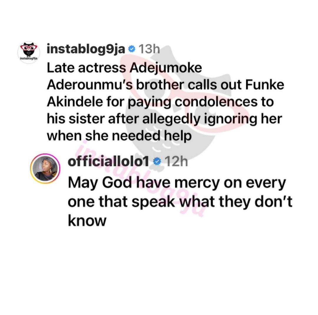 After Funke shared her condolences and mourned her friend, the brother of the late actress took to his page to drag the filmmaker describing her as a hypocrite.