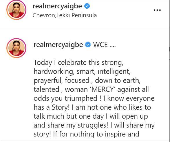 Adding to her point, Mercy Aigbe noted that someday, she intends to put her story into words as a way of inspiring others not to give up on their struggles.