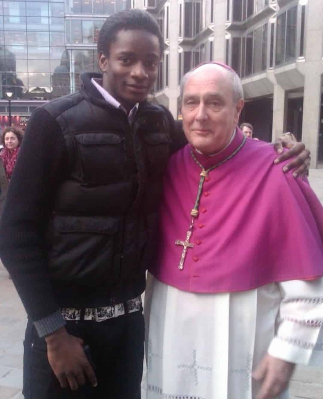 “One day I will tell the story of how close I was to becoming a priest. Myself and the Bishop in 2010 during one of my confirmation ceremonies before I became a full catholic member.”