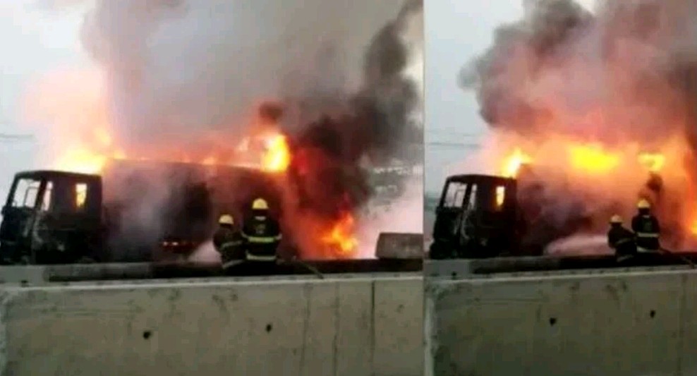 It was gathered that the incident happened after the tanker laden with fuel collided with the road demarcation which sparked off the fire on the tanker.