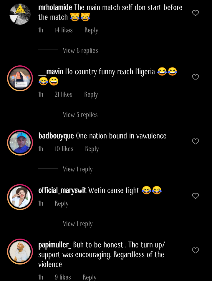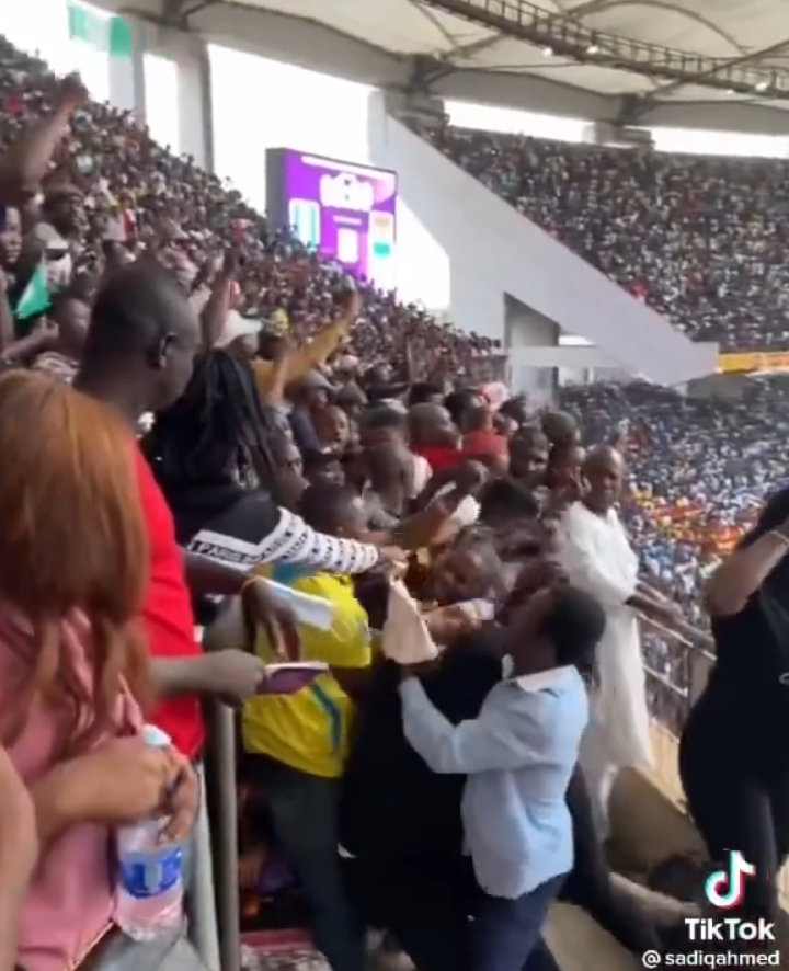 “One nation bound in vawulence” – Watch moment group of individuals engaged in messy fight while the Nigerian national anthem was being recited during World Cup qualifiers
