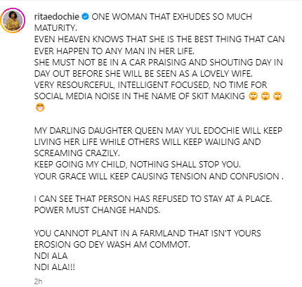 “One woman who doesn’t have time for social media noise in the name of skit making” – Rita Edochie praises May