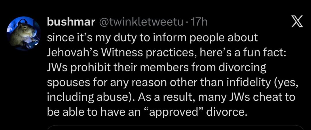 “Only infidelity” – X user shares shocking reason why Jehovah’s witnesses find it hard to divorce their spouse