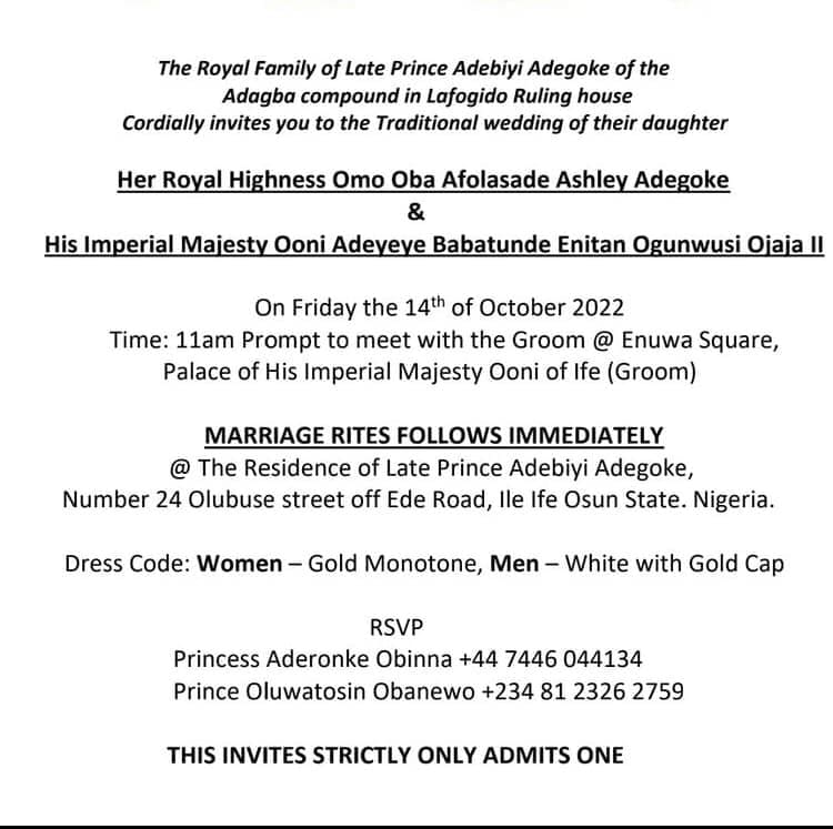This October, the Osun monarch will be marrying Tobi Phillips and Ashley Adegoke.