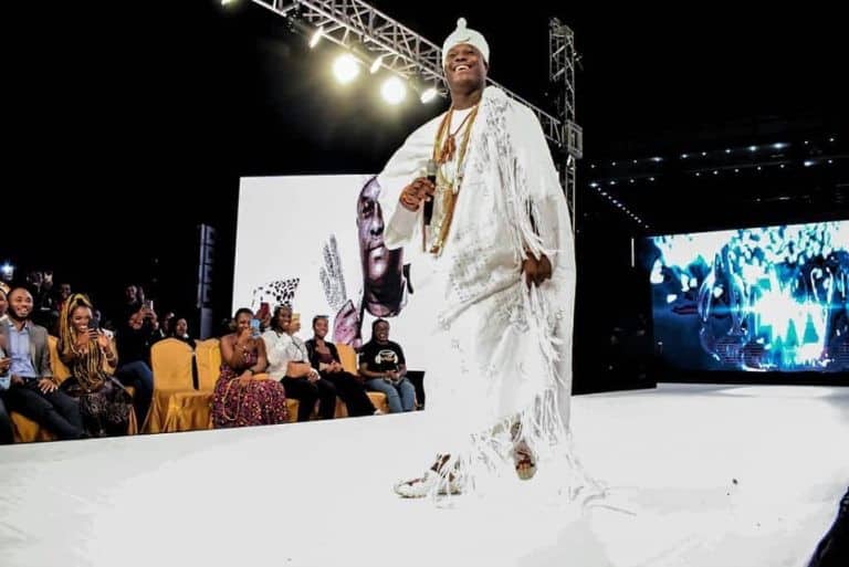 The Ooni of Ife, Oba Adeyeye Ogunwusi, ruled the runway at the African Fashion Week in Lagos, where he had to briefly show off his inner modelling skill.