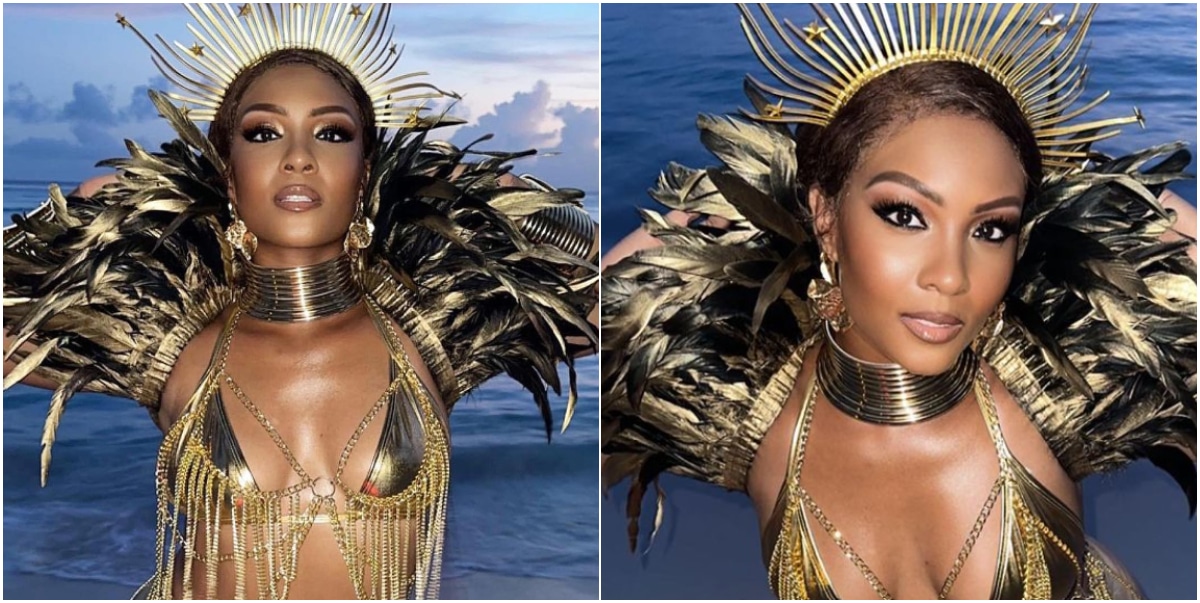 Osas Ighodaro sets #CropOver2023 ablaze in gold carnival attire (Video)