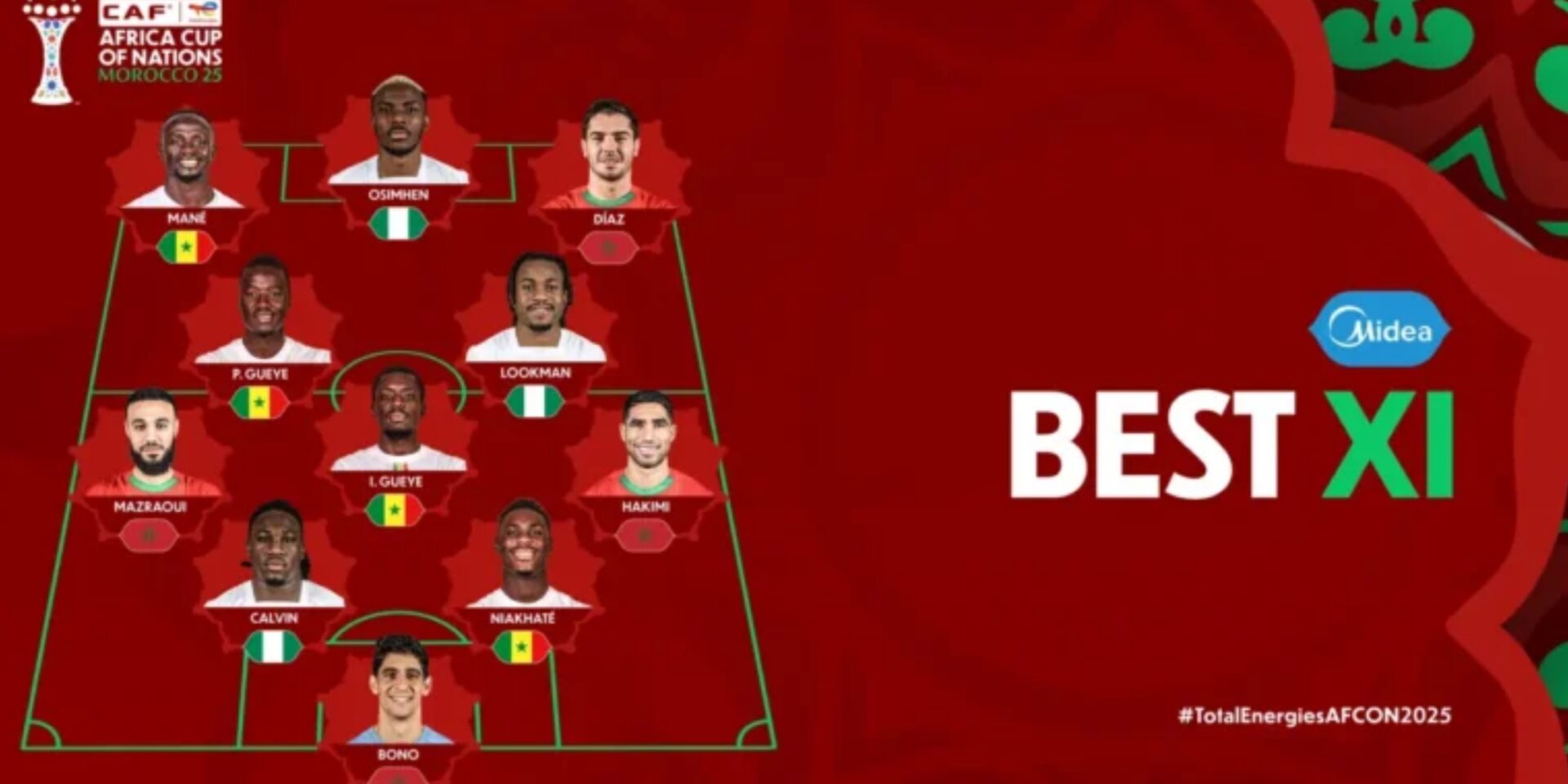 The Confederation of African Football, CAF, has officially unveiled the Best XI for the 2025 Africa Cup of Nations in Morocco, with Nigeria’s Victor Osimhen, Ademola Lookman and Calvin Bassey earning places in the Team of the Tournament.