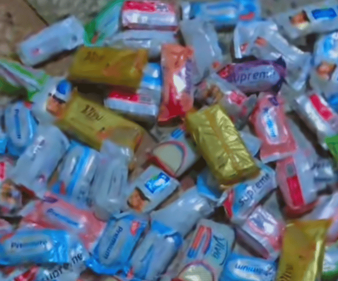 A surprised Nigerian lady has shared a video of the heap of soaps her house help stole from her while working.