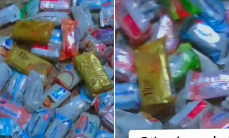 A surprised Nigerian lady has shared a video of the heap of soaps her house help stole from her while working.