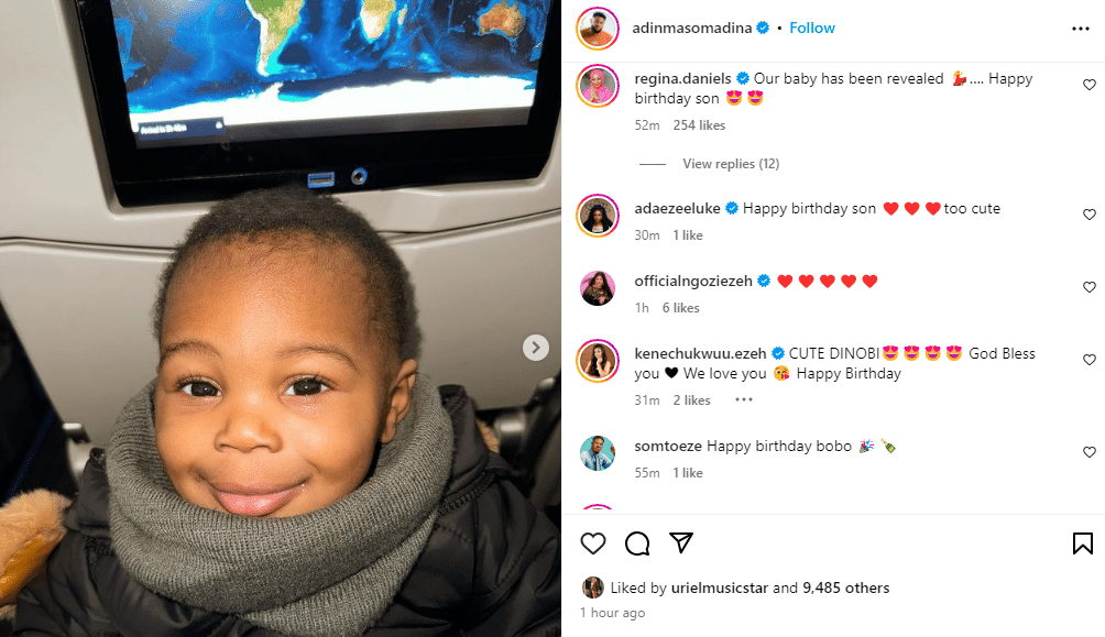 “Our baby” – Regina Daniels reacts as ex-boyfriend, Somadina Adinma unveils his son on first birthday