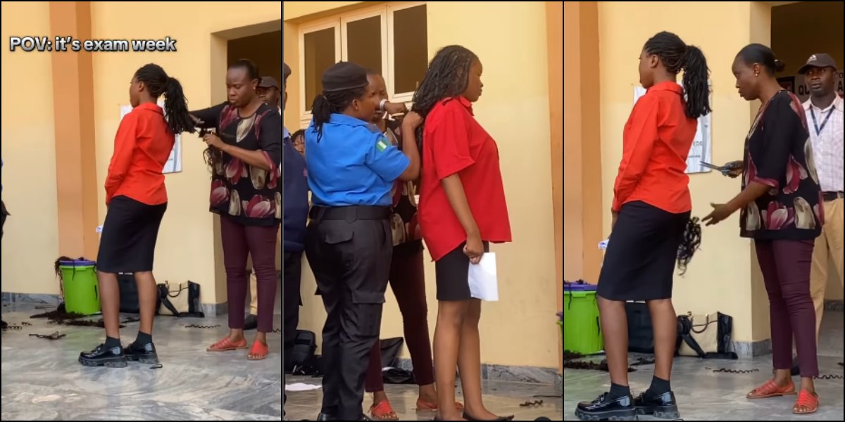 Mixed reactions as university staff are spotted in a trending video cutting students’ braids off.