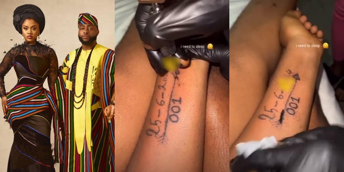 An overzealous fan has taken her admiration for Davido and Chioma to the next level as she gets a permanent tattoo of the couple’s wedding date on her hand, sparking a frenzy of reactions.