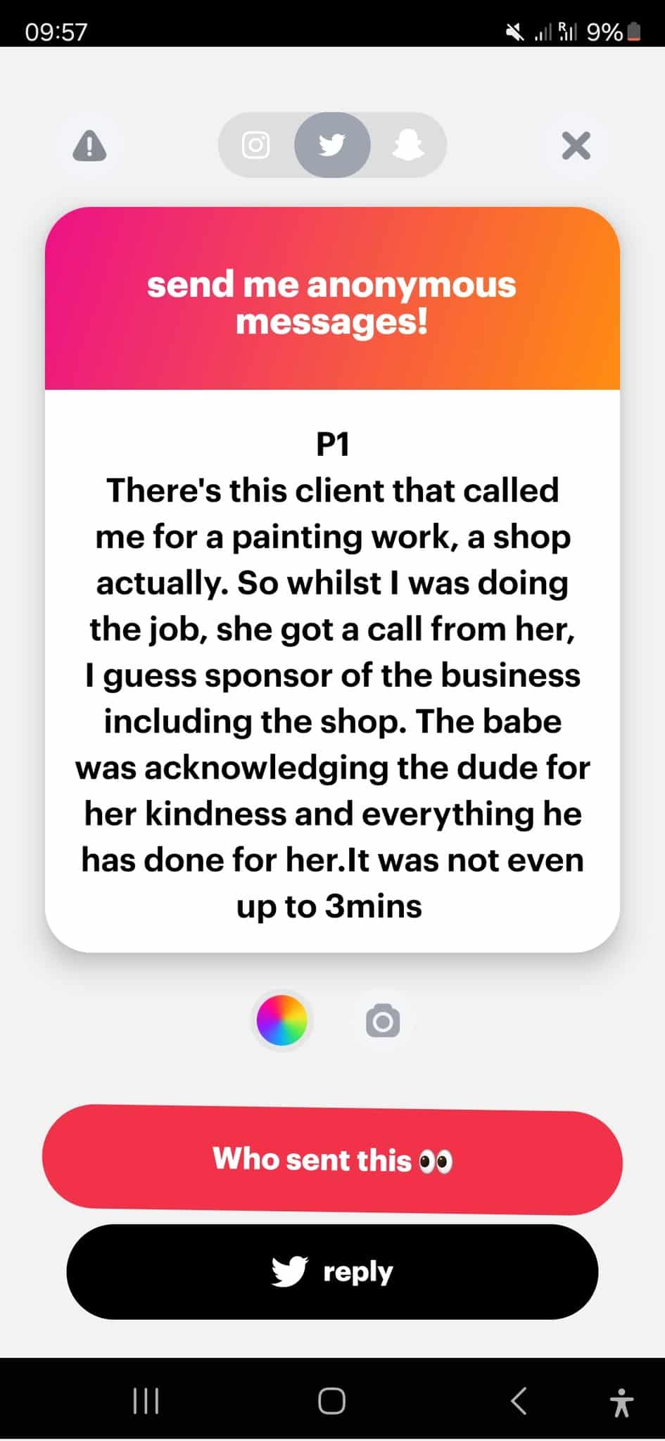 The painter’s full confession reads: “I had a client who hired me to paint her shop. While I was working, she got a call from her guy, who I assumed was sponsoring her business. She was full of praise and gratitude.”