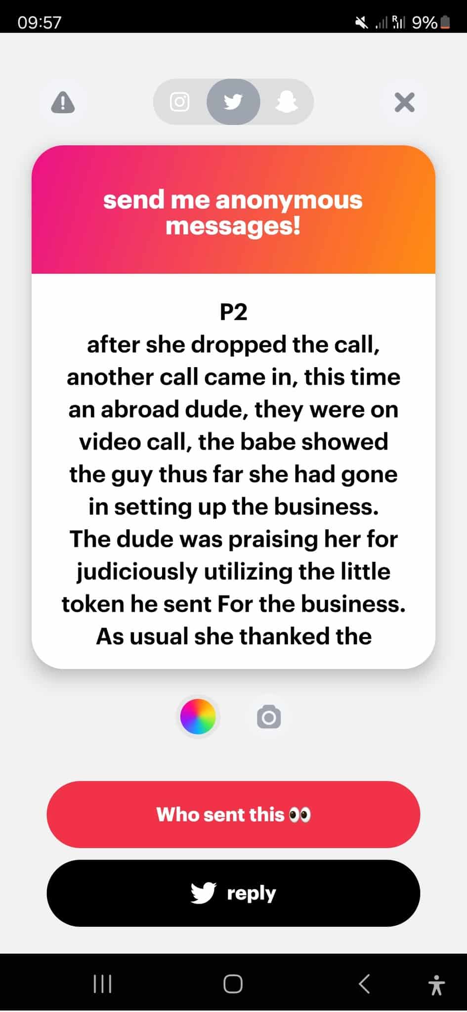 “Just three minutes after ending the call, another video call came in from a guy abroad, who was also praising her for making good use of the funds he sent.”
