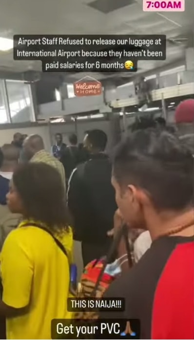Pandemonium as airport staff refuse to release passengers’ luggage in protest over unpaid salary (Video)