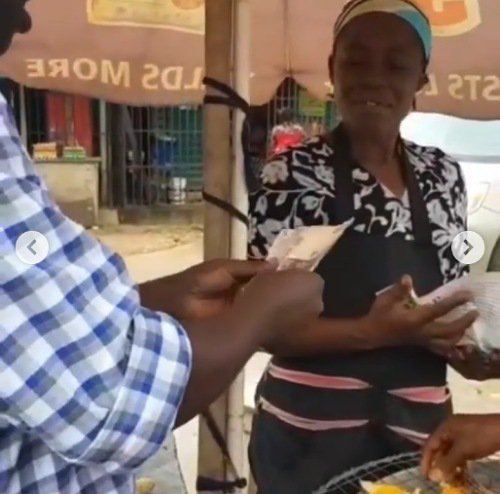 Pastor Adeboye’s son, Leke gifts corn seller money after watching her pray over her charcoal pot (Video)