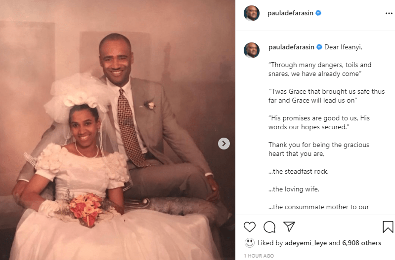 Popular man of God and founder of the House on the Rock churches, Pastor Paul Adefarasin has taken to his social media timeline to pen a lovely note to his wife, Ifeanyi as they celebrate their 26th wedding anniversary together.