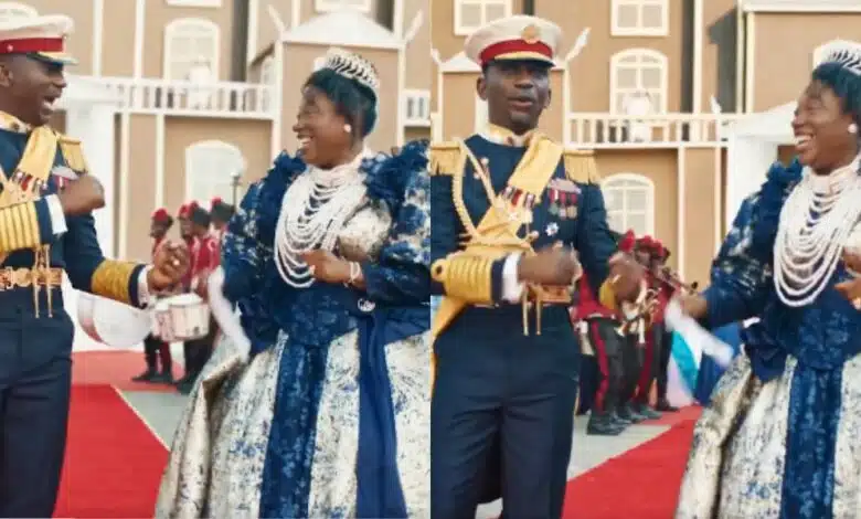 The clip features Pastor Enenche and others dressed in Victorian-inspired attire, dancing and celebrating to the vibrant beat.