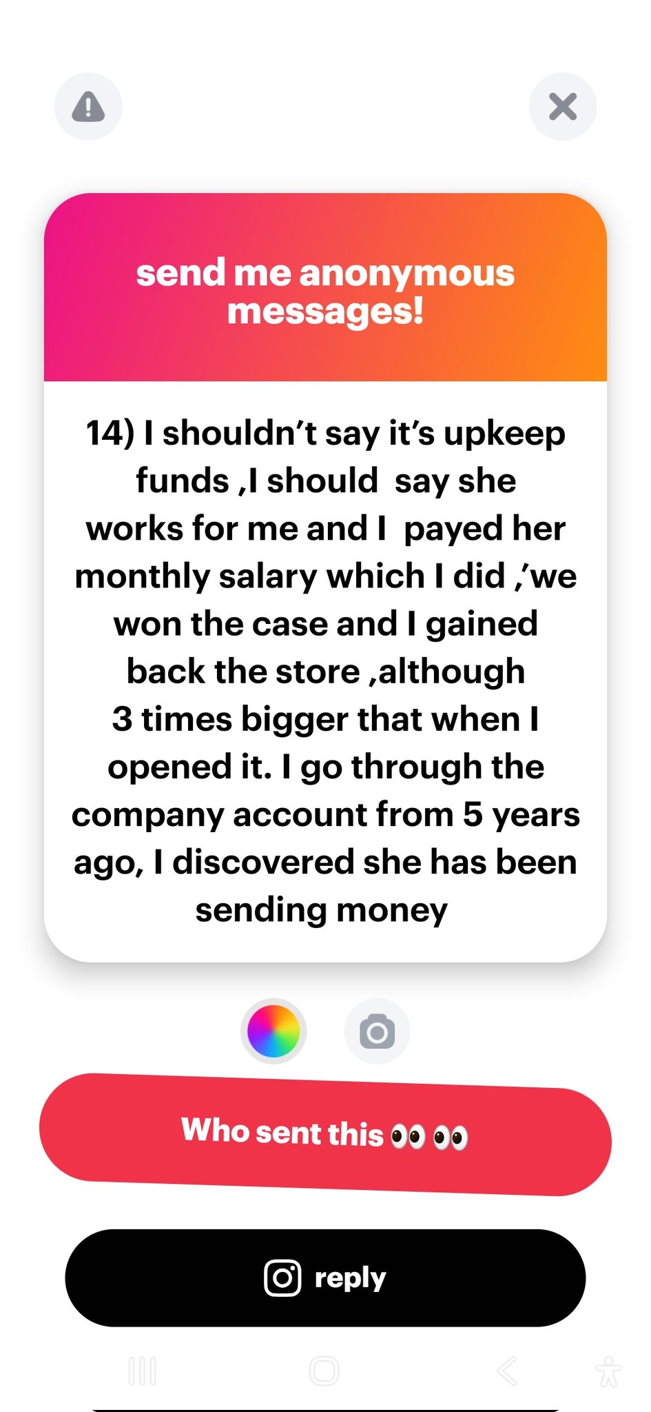 I shouldn’t say it’s upkeep funds ,I should say she works for me and I payed her monthly salary which I did ,’we won the case and I gained back the store ,although 3 times bigger that when I opened it. I go through the company account from 5 years ago, I discovered she has been sending money to her boyfriend ,i sue her for embezzlement | took the remaining money in her account. Returned her to how I met her before I married her,That was December last year. Her mother called me last week that if anything happened to her